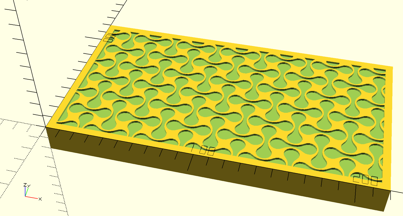 This OpenSCAD module provides the required mechanisms to spray a pattern on a surface.