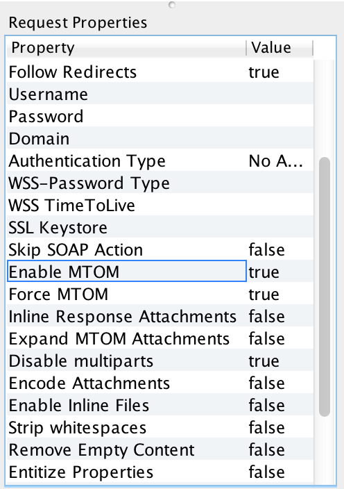 Enable MTOMandForce MTOMin the bottom left pane are set totrue.