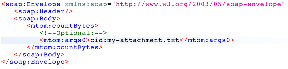 <mtom:args0><inc:Include href="cid:my-attachment.txt" xmlns:inc="http://www.w3.org/2004/08/xop/include"/></mtom:args0>